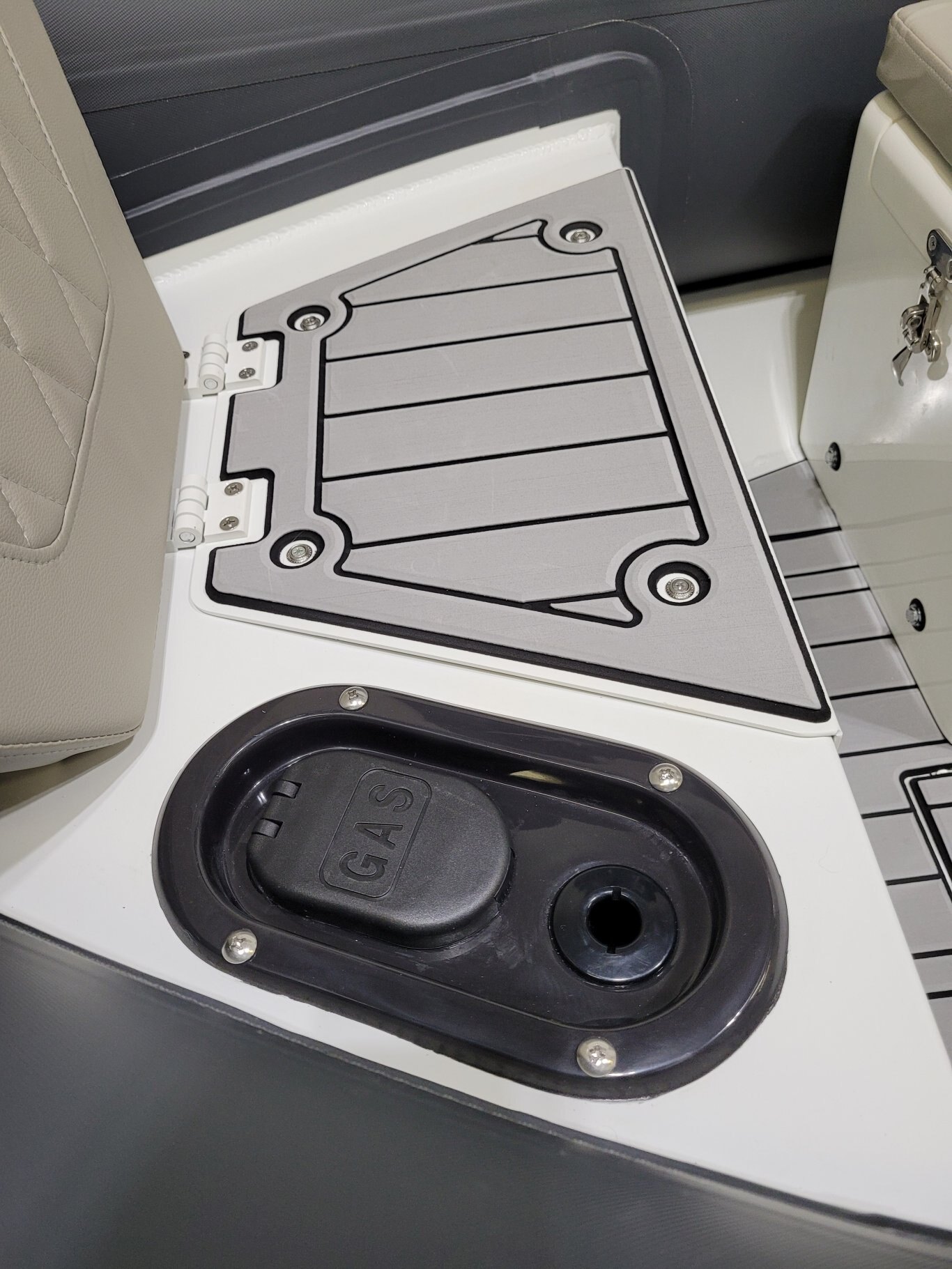 The boats have a bow locker and double layer EVA covered deck which allows you to put a fuel tank in the locker and run the fuel pipe underneath the deck, this keeps your feet dry for a more comfortable trip.