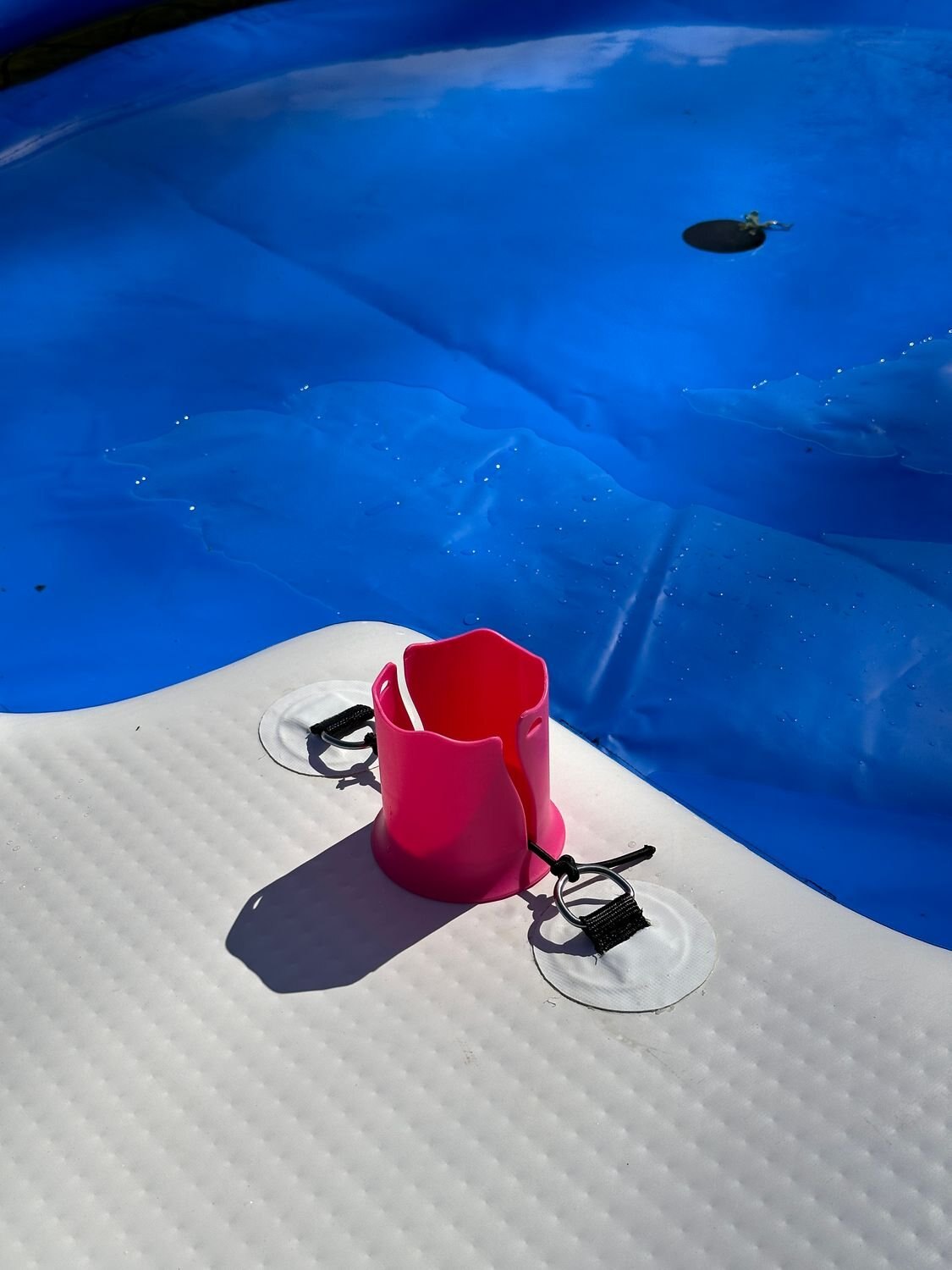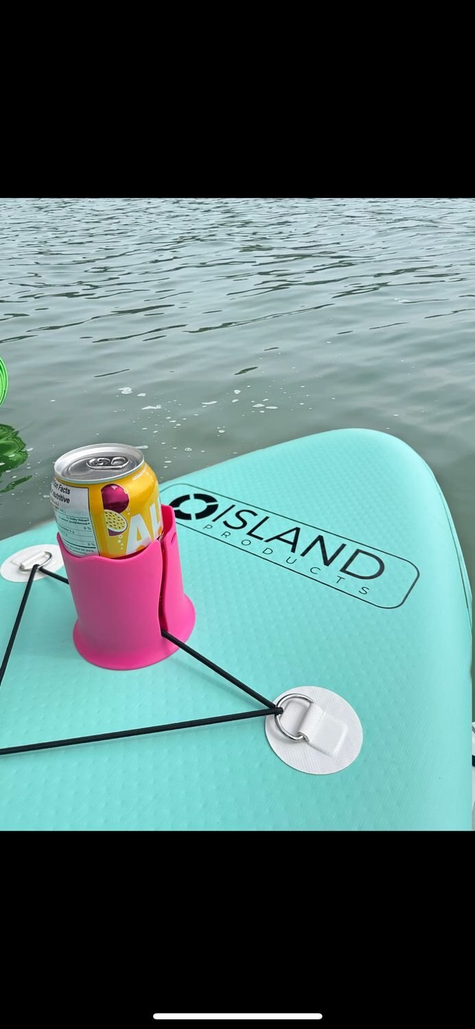 These Cup Holders are made semi rigid plastic it will easily handle years of abuse and secure your beverage from tipping over while on the lake. Although used most for stand up paddle boards we have our New Island Float designed with  bungees into the arm rests for the perfect spot for this  drink holder.