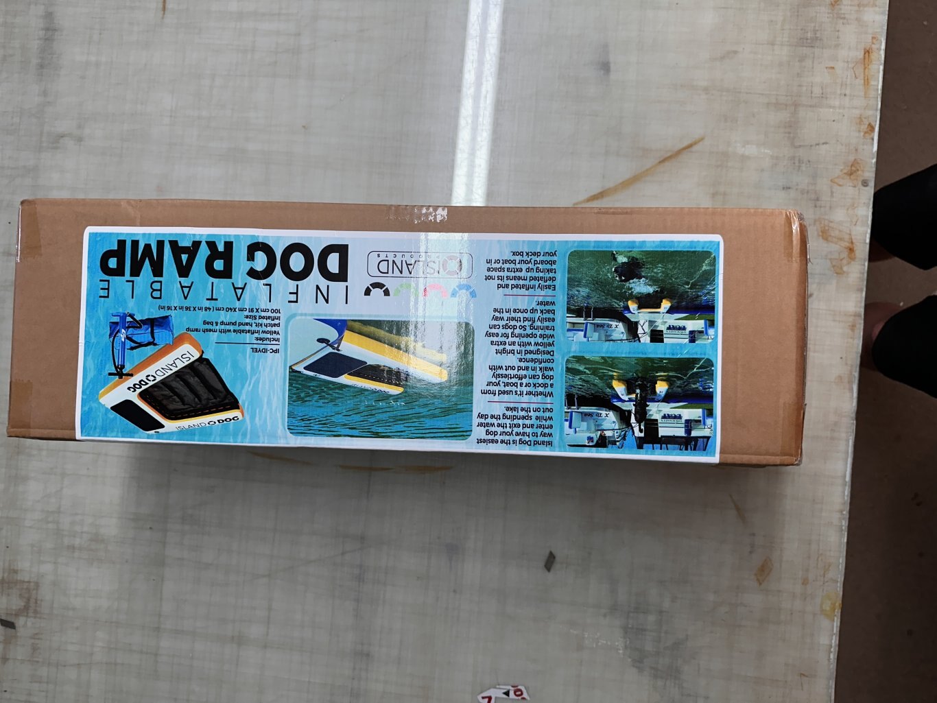 Designed in bright yellow and has an extra wide opening for easy training. This lets your dog easily find his way back up once in the water. The Island Dog includes a hand pump to blow it up in just 2 minutes, and stores as small as a camp chair!